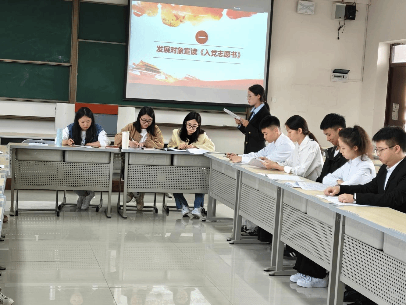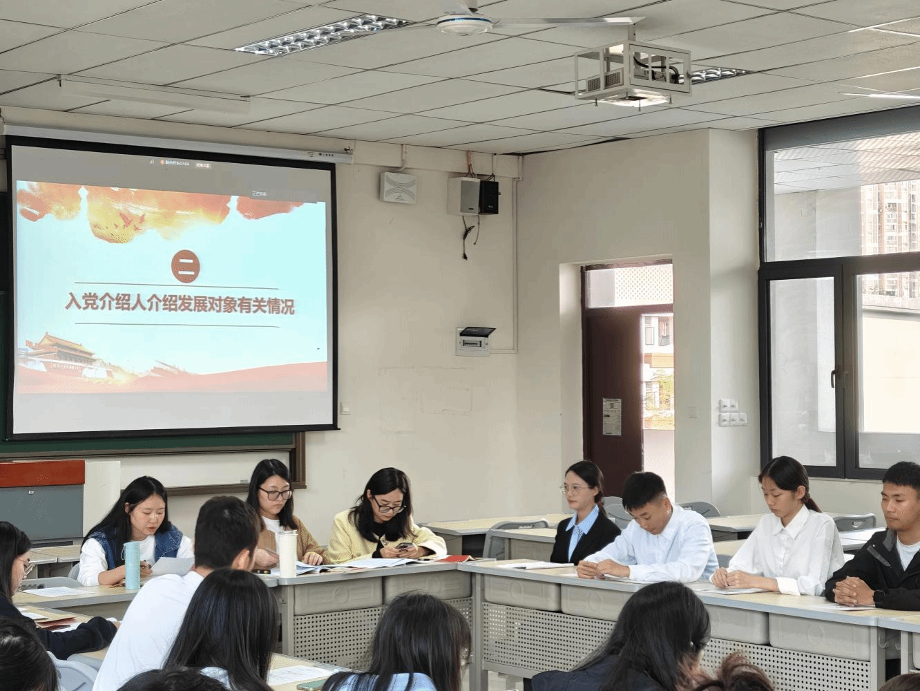 为壮大支部党员队伍,增强支部力量,为党组织汇入新鲜血液,数字经济与信息管理学院学生第一、第二党支部于2024年11月14日15:00在双栀书院302教室召开支部党员大会,讨论发展对象孟桥、廖鑫毅、罗皓月、王焮、刘芃妤、谭皓尹6位同志入党问题。本次会议由学生第二党支部书记王瑞同志主持,学生第一、第二党支部支部全体党员参会。