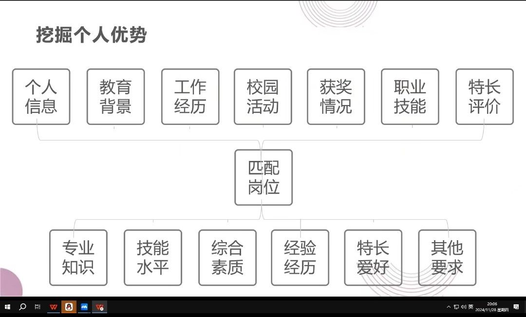 为进一步提高即将毕业的同学们就业规划能力,继续加强提升同学们制作个人简历的能力和参加职场应聘的技巧,自信应对日趋严峻的就业市场。辅导员马莉和2023级工程管理(专升本)、数字经济(专升本)专业全体同学于2024年11月28日晚7点在腾讯会议开展主题为“指导目标明方向,助生就业向未来”的就业主题年级会。对同学们进行就业指导,并就求职技能问题进行一系列讲解。