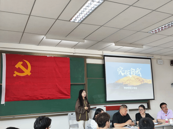 座谈会上,支部邀请四位选择考公、考研、就业、创业不同发展道路的毕业生党员代表,以他们的亲身经历和深刻感悟,为即将步入大四的党员同志提供宝贵的未来规划指导。其中,李佳芮同志深入剖析了自己选择深造的原因,并细致分享了考研过程中的学习策略和心态调整方法。她强调,同学们应根据个人兴趣和长远职业规划,做出符合自身发展的明智选择,为未来的研究生生涯奠定坚实基础。在分享过程中,廖晨呈同志特别提到:“选择大于努力,努力固然重要,但好的选择会带来事半功倍的效果。我们要有突破自我的勇气,勇于面对未知的挑战,才能实现自己的人生价值。”该环节不仅为毕业生党员们提供了一个交流经验、展示成果的平台,也发挥了党员的标杆作用,为将步入大三的党员同学们树立了榜样。