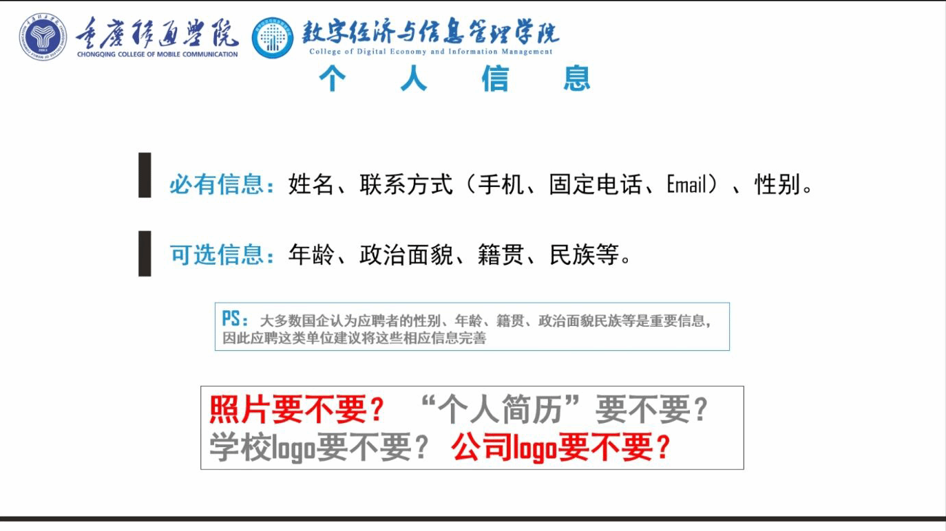 在年级会中,马莉老师强调简历在求职过程中的关键作用。简历不仅是求职者与用人单位建立联系的桥梁,更是展示个人能力和经验的重要工具。因此,制作一份高质量的简历对于每位求职者来说都是至关重要的。稍后,马莉老师指出简历中包含个人信息、求职意向、教育背景和社会实践等关键要素的重要性。她强调,在撰写简历时,求职者应注重突出自己的核心竞争力和与岗位需求相匹配的能力。
