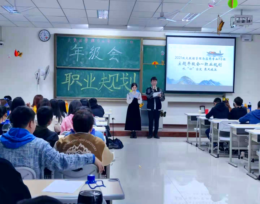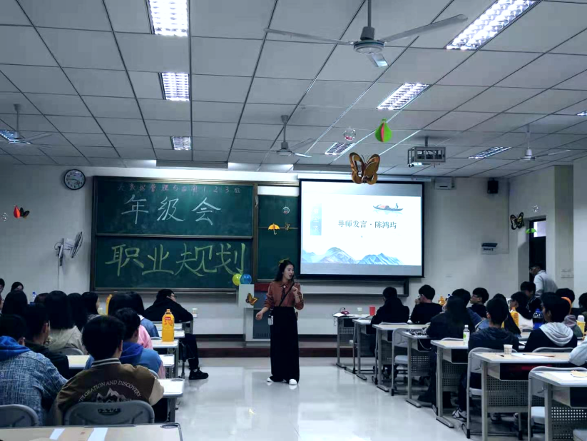 “逐鹿职场,运筹为先,合理规划,圆我梦想”。为进一步普及大学生职业生涯规划知识,提高大学生就业、创业技能与实践能力,助力大学生就业、创业。2021年10月20日大数据管理与应用专升本1-3班全体同学在双栀书院301教室正式举行“不忘初心,勇往‘职’前”职业规划主题班会,辅导员张婷老师和异科导师陈鸿玙老师参与本次年级会,为同学们的职业规划答疑解惑、出谋划策。