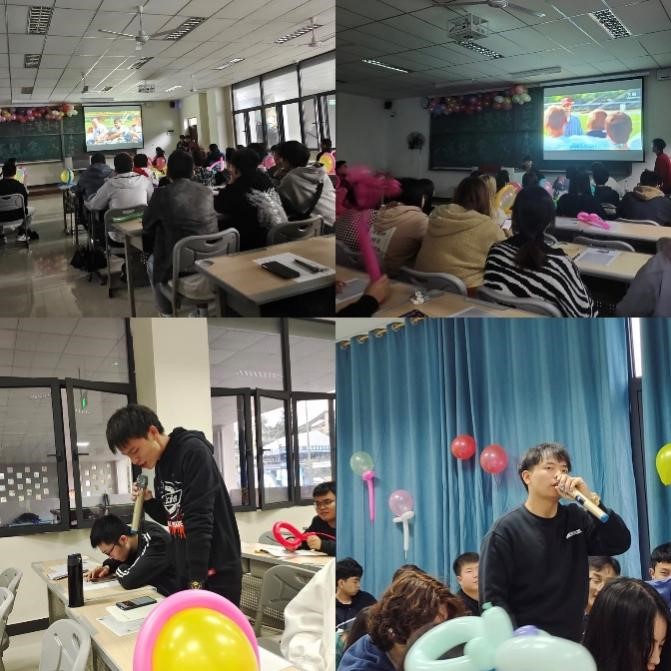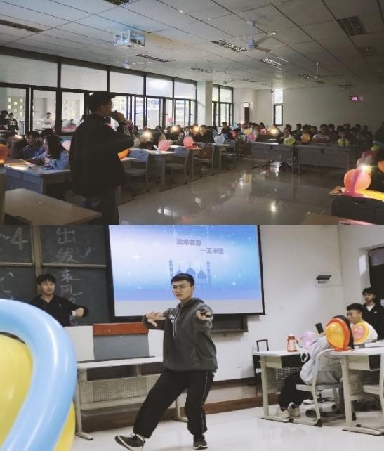 本次活动我们有幸邀请到杨超同学和王毕坚同学为我们展示才艺。在两位同学的精彩演出时,其余的同学也投入其中。我们想通过年级会传递给大家“除了学习,自身兴趣爱好的培养也同样重要”这一观点。正如黑格尔所说“一个深广的心灵总是把兴趣的领域推广到无数事物上去”,人生不过短短数十年,所以更应该挖掘自己的兴趣爱好且坚持做自己热爱的事以陶冶情操,同时也能向他人展示自我。