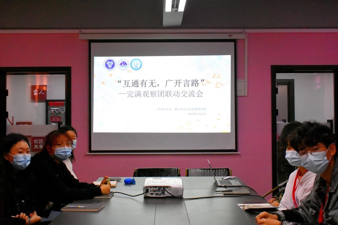 为进一步提高完善完满观察团工作效能,推动我校完满教育稳固发展,我院创新工作形式,立足“焕新提质”年度关键词强化完满观察团相关工作职能。数字经济与信息管理学院联合外国语学院完满观察团于11月5日14:30在爱莲书院多功能会议室顺利召开“互通有无,广开言路”完满观察团联动交流会。数字经济与信息管理学院团总支书记马莉老师、外国语学院屠建丽老师以及两院观察团成员参与此次交流会,就相关工作进行探讨。