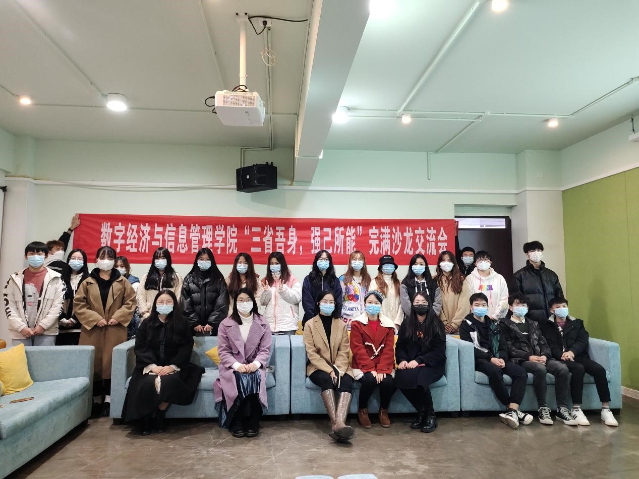 “抓创新就是抓发展,谋创新就是谋未来”。为扎实推进数字经济与信息管理学院完满观察团相关工作提升各部门活动质量,数字经济与信息管理学院于11月12日15:00在双栀多功能影音室准时召开“三省吾身,强己所能”完满沙龙交流会。我院副院长任瑞娟老师、团总支书记马莉老师、竞技体育板块指导老师吴生亮、汪立老师、志愿服务板块指导老师彭薇薇、王瑞老师、宣传推广板块指导老师曹文扬老师,社团活动板块指导老师刘琳、张婷老师出席本次活动。本次完满沙龙围绕我院十月完满教育工作问题反馈,在疫情防控要求下如何转变活动形式等问题展开讨论。