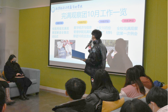 总结复盘,扎实推进十一月完满教育工作。我院完满观察团成员就十月完满观察团工作进行总结并对十一月工作征求工作意见。副院长任瑞娟老师对此提出建议:完满观察团不能局限于本院活动的观察,还应面向其他院活动,作为参与者全面看待汲取他院活动优势,改善现有不足。同时完满观察团在对活动点评中需要更加客观理性,不能一味挑刺或找优点。