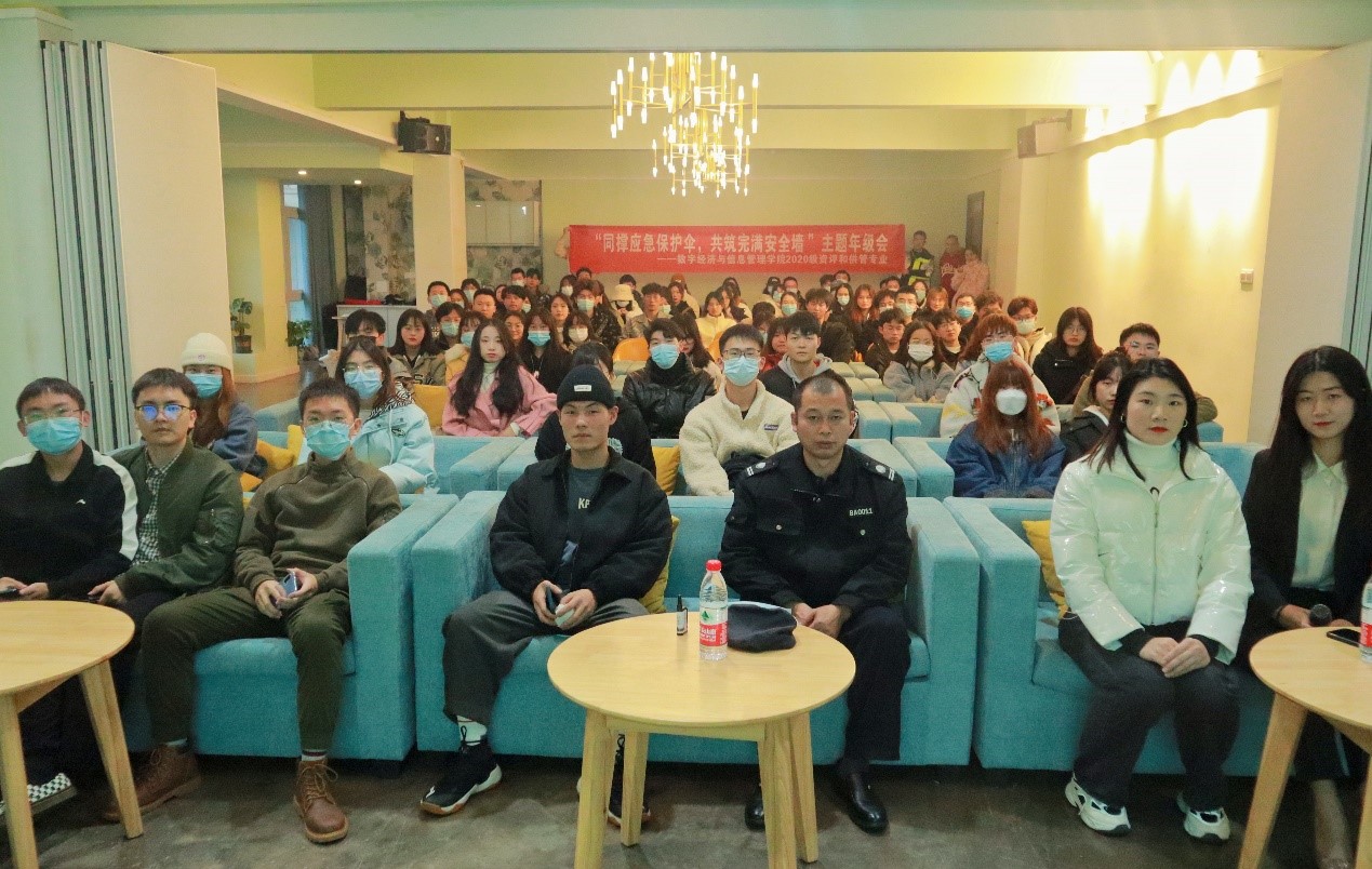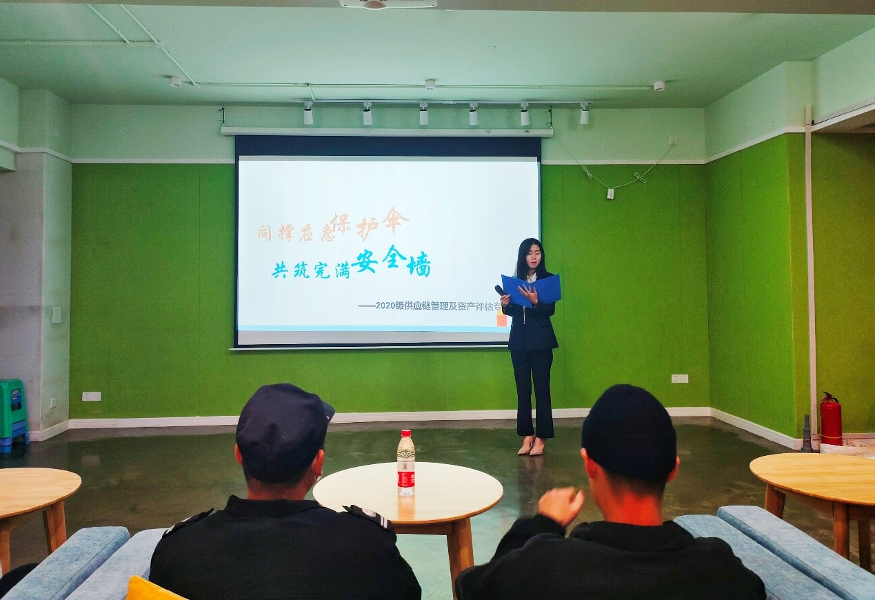 为提高同学们应对突发事件的风险意识,增强突发事件应急反应能力,牢固树立“安全第一,预防为主”意识。11月21日下午16时,我院2020级资产评估1-2班、供应链管理1班专业在双栀书院多功能影音室开展了“同撑应急保护伞,共筑完满安全墙”十一月主题年级会,现场通过理论讲解和应急演练,提高同学们应对突发事件的分析、研判、协调能力。此次主题年级会班级邀请了2020级四大专业辅导员吴生亮老师、学校保卫处黄建叔叔以及工程管理、信息管理与信息系统专业班委。