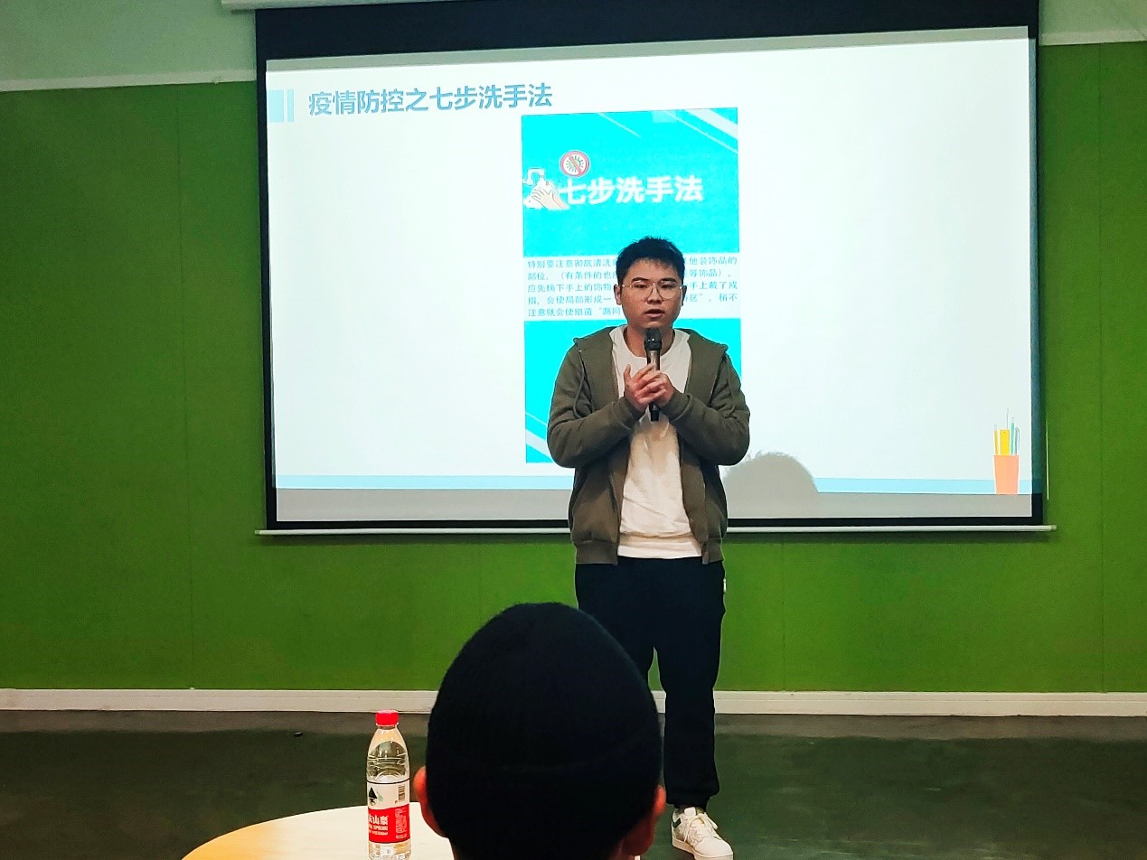 近日,重庆新冠肺炎疫情防控卓有成效,为积极响应重庆市疾控中心正确佩戴口罩、勤洗手、不聚集、保持一米线距离等防控工作要求。配合学校疫情防控工作开展要求,提高同学防疫意识,此次主题年级会现场播放了每日指尖移通打卡以及防疫视频,同时讲解和演示了“七步洗手法”,积极倡导各位同学在日常学习生活中加强自我健康管理,如出现发热(≥37.3℃)、干咳、乏力、咽痛、嗅(味)觉减退、腹泻等症状,及时在辅导员进行登记报备,到就近医院发热门诊进行排查和诊疗,主动告知医护人员,树立“每个人是自己健康第一责任人”的理念,提高防护意识,养成良好卫生习惯。