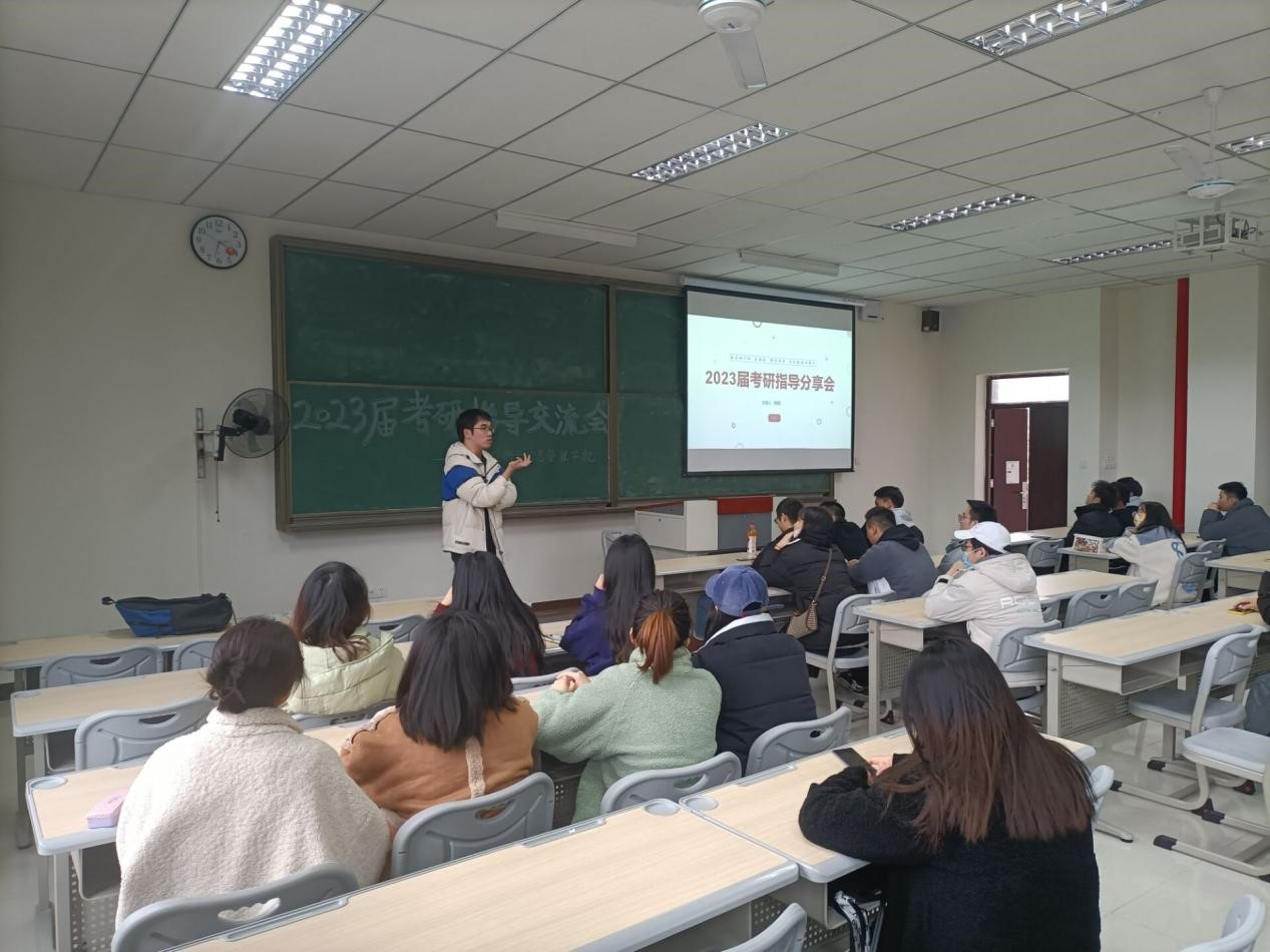 学海无涯,唯苦做舟。时间临近又一个考研月,为充分了解考研信息,深度理解考研背景,进一步提升我院同学备战效率。我院于11月26日14:30在双栀书院308教室开展2023届考研指导交流会。本次交流会有幸邀请到我院陈阳老师来为同学们剖析考研相关信息以及讲解考研所需准备。