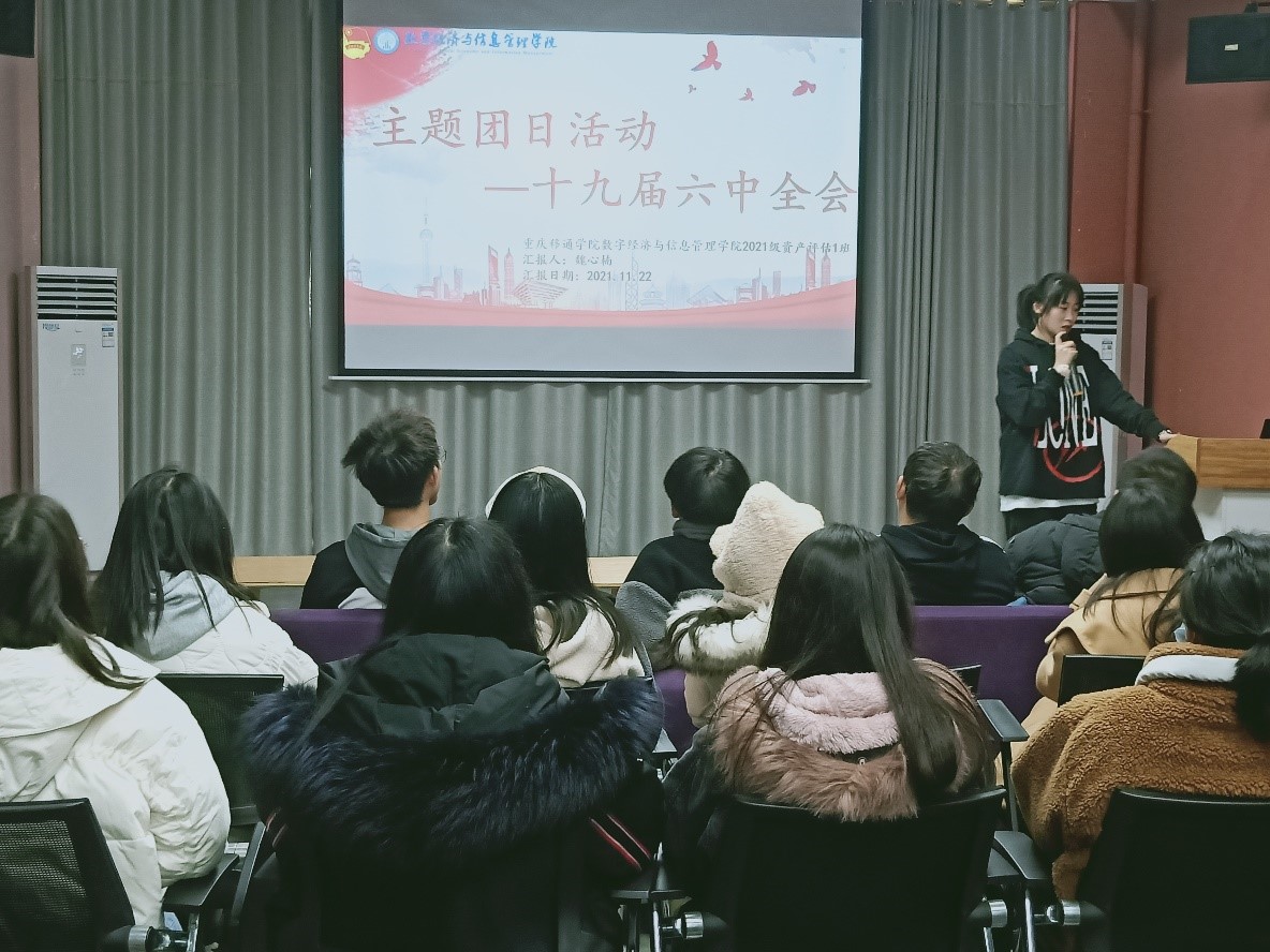 2021年11月22日,为强化大学生的爱国思想理念,增强团组织凝聚力,紧密联系团员青年。2021级资产评估1班主题团日活动于别都书院四维空间如期举行。本次团日活动以十九届六中全会为主题,由团支书魏心楠主持,资产评估一班全员参与。