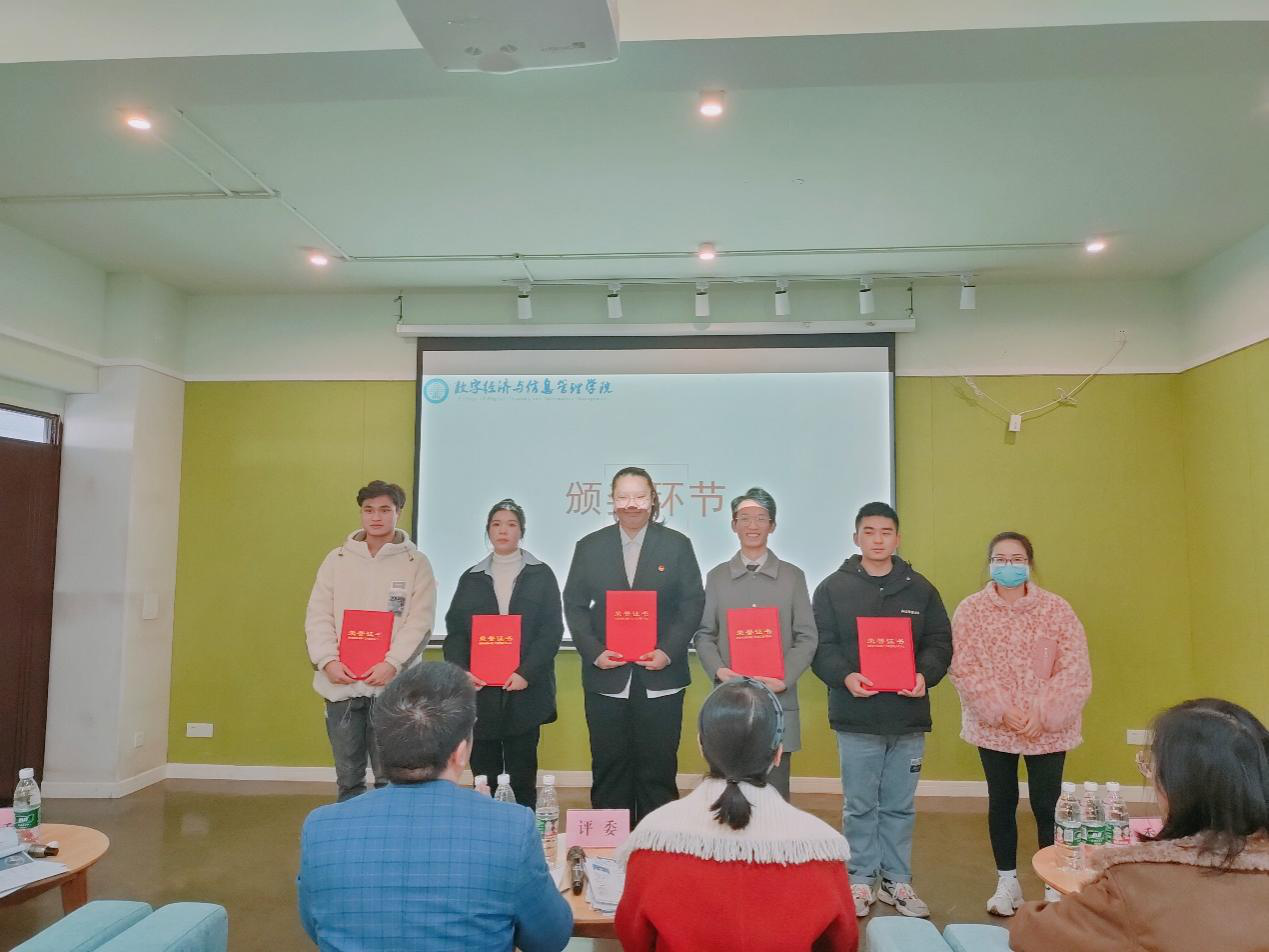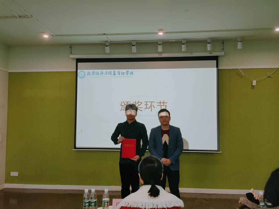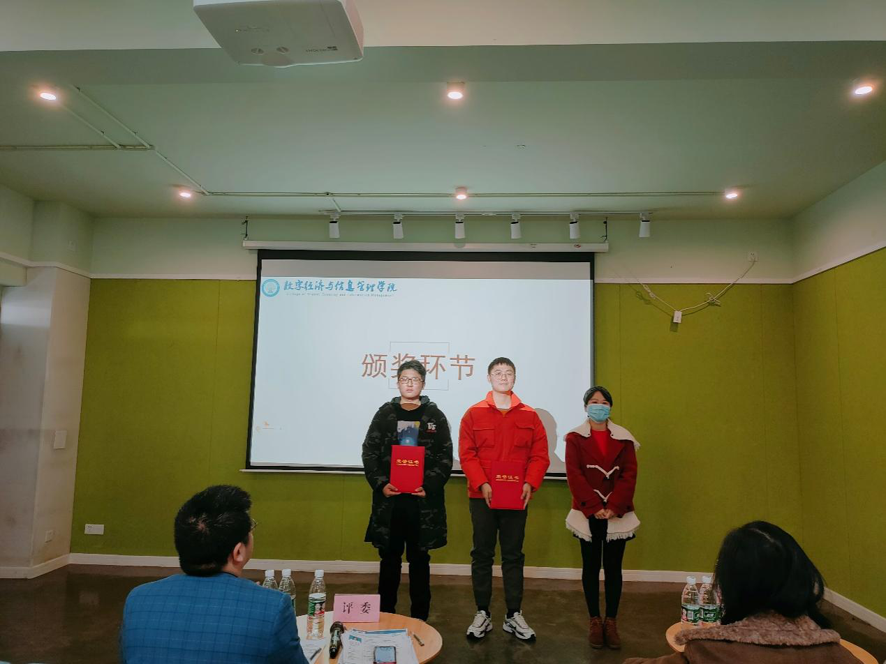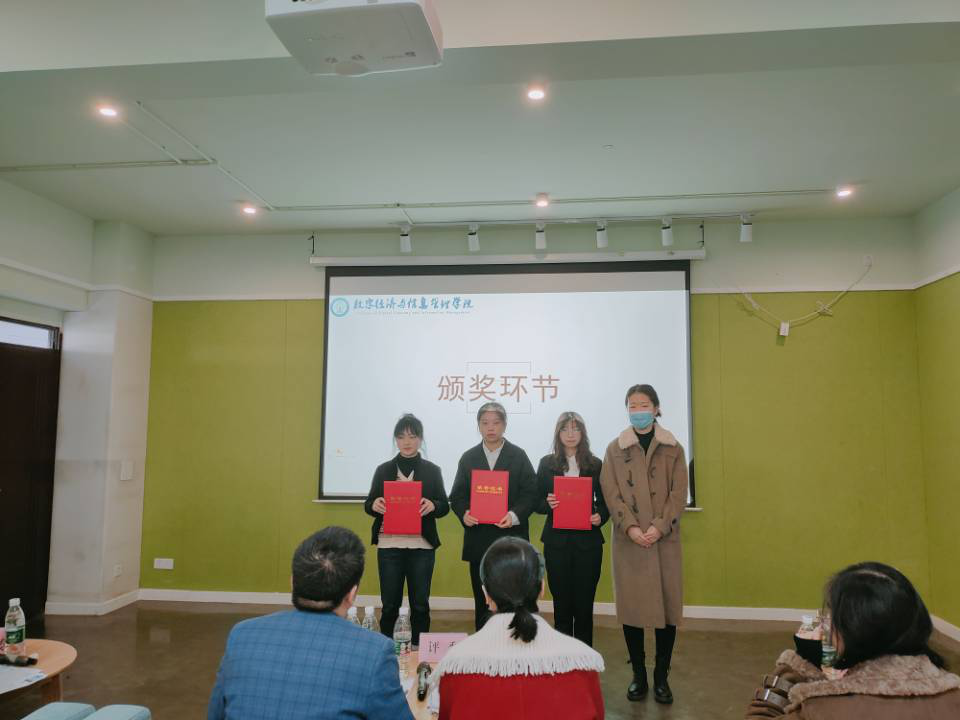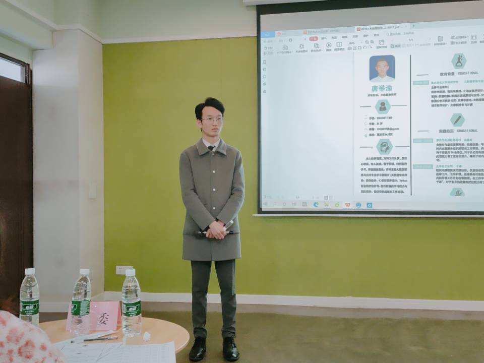 老师致辞结束后,经过严谨的统计与计算,最终获得优秀奖的同学有朱怡乐同学、唐举渝同学、田茂杰同学、刘振民同学、魏雯倩同学,获得三等奖的有杨淑灵同学、何雨婷同学、黄暻洁同学,刘余同学和马一强同学获得二等奖,最后刘鑫同学以91.8分荣获此次首届简历制作大赛一等奖。