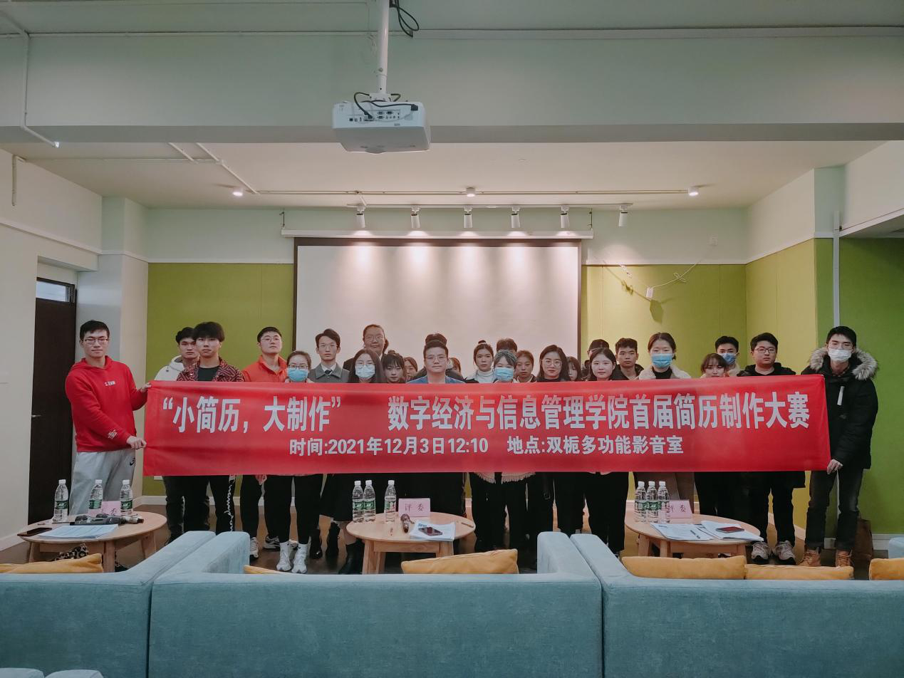 在“大众创业、万众创新”的时代号召下,就业号角已然吹响,简历作为求职就业敲门砖,是企业初步认识和了解求职者的主要媒介之一。为增强学生就业能力,丰富简历制作经验,提升简历制作水平,获得更多就业机会。我院于12月3日中午12:10在双栀多功能影音室举办数字经济与信息管理学院“小简历·大制作”首届简历制作大赛。此次比赛有幸邀请到数字经济与信息管理学院学生工作办公室主任廖阳老师,团总支书记马莉老师,志愿服务版块指导老师彭薇薇老师,社团活动版块指导老师刘琳老师、张婷老师,竞技体育版块指导老师汪立老师,宣传推广版块指导老师曹文扬老师。