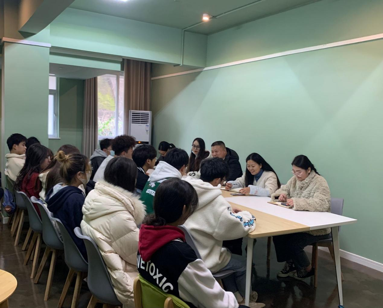 会议伊始,有同学提出:大学考试与高中考试的不同之处在哪、什么时候结束考试?等一系列问题。潘院长和老师们纷纷耐心解答:大学与高中考试流程基本一致,按照最新考试安排一月十一号考试正式结束。师生交流如火如荼的进行着,老师和同学们都热切交谈关于学习方面的问题。