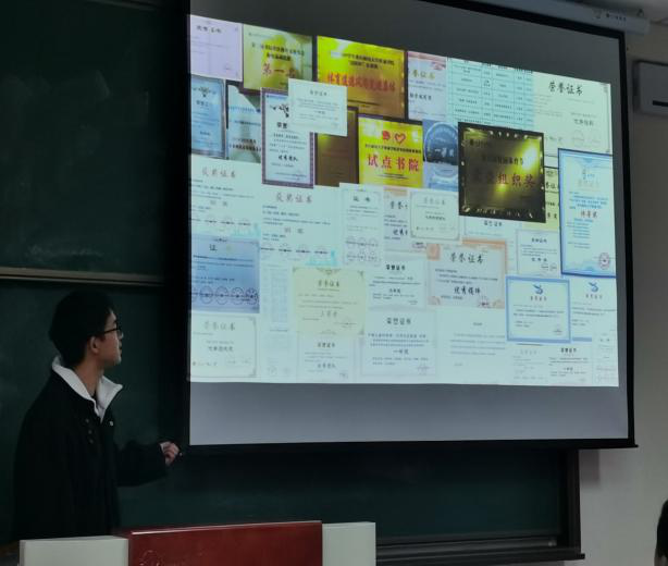 我校北山书院家文化工作以“仪式感教育渐渍家风”、“传统享化默化行嘉言”、“无形无润物传”三条主线开展,融入家风、家训等元素培养同学们坚持、勇敢、自信的性格特点。北山书院学生组织主席团成员吴定香从北山书院的“家文化”的角度向同学们剖析北山书院是怎样坚持“进之以勇,持之以恒”来培养坚韧的北山人的。在他的讲解中,同学们了解到我校北山书院“坚韧力”的培养是以“习惯养成”为轴,在潜移默化的习惯浸润中培养学生的;以学生“习惯养成”为基础,以“文化传承”为轴,从文化自信的角度重拾工匠精神,提高学生坚韧力。他谈到三下乡暑期志愿服务活动、书院入院仪式、八个勤系列活动、坚韧跑系列活动、北山特色成长日历、北山家谱绘制等多个特色项目并逐一为同学们进行内容及细节的讲解。在其讲解的最后,他为同学们播放了北山书院自创MV宣传片《这是我的家》,歌词铿锵,旋律磅礴,他用他的方式向同学们传递北山书院“挫折教育”“竞技挑战”培养方式对同学们身心素质发展的培养优势。