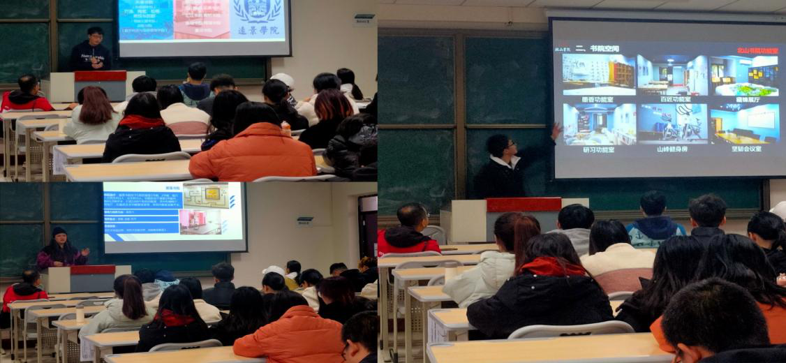 学生书院联合会为我校书院部直属学生团队,下辖各书院学生团队,以服务广大同学为宗旨,统筹协调各书院团队开展各项工作。学生书院联合会主席团成员甘晨均首先就学生书院联合会全面探索搭建的“1313+”工作体系模型、领导力的特色培养等工作内容向同学们介绍我校书院制各书院的书院文化、书院人物、书院情感、书院特色。另一方面他为同学们解读了我校专业集中式书院、社区文化式书院、文理式书院三种不同类型书院的特点和优势。他强调:“每个书院的培养模式和方向皆不相同,在尊重我校各书院特色的同时,我们书联更需要联合各书院打造“构建家氛围”这个共同的特点,统筹各书院共同形成书院“家文化”,以便书院可以更直接、全面地服务学生并助其改变与成长。”