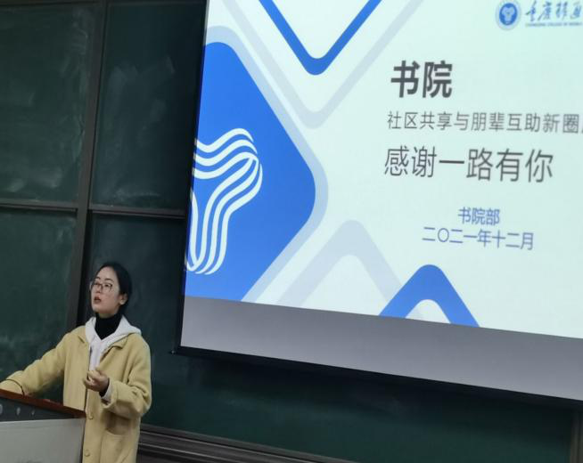 爱莲书院作为我校社区文化式书院之一,始终以“用艺术审视自我,用艺术品鉴世界,成就惟美爱莲人”作为其发展愿景,立足“想象•品鉴•艺术”三者相统一的培养基点,爱莲书院总在一年中“恰好”的时候为同学们带来一场场异彩纷呈的活动。爱莲书院学生组织主席团成员、完满达人黄羽萱从爱莲书院以往开展的活动实例进行讲述,她带同学们再一次重温“记光影谈·书院沙龙”活动中爱莲书院借助光影所诠释的生命意义。提及“舞林争坝,台属爱莲”活动时,她说道:“这场体育文化节活动,在爱莲书院的小广场进行跳舞打卡,让同学们随音乐起舞,在他们切实感受青春散发出的自信与魅力时,这何尝不是爱莲书院提高艺术鉴赏力的有效培养方式。”她立足活动实例的生动讲述,向同学们充分表达富有爱莲特色的培养工作与“鉴赏力”紧密结合,除了以“鉴赏美”为目标更从“观-鉴-思-现”四个维度打造4M领导力的活动体系设计是深度契合学生们成长的。