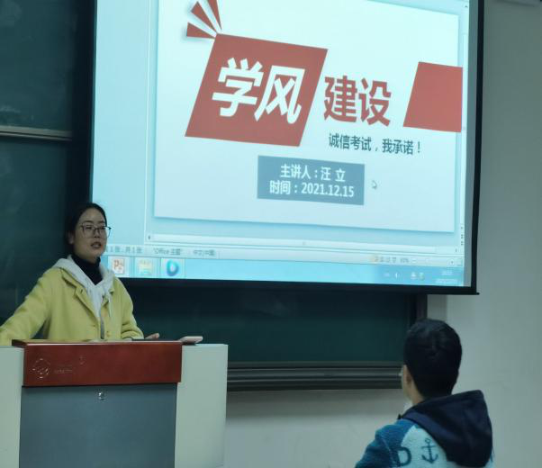 本次年级集中会的最后,辅导员汪立老师对本次年级集中会中涉及到的书院制的核心内容进行总结,她表明:“我们的书院为大家提供了完善自己学习知识的平台,同学们应该端正学风,在我校书院浓厚的文化氛围感染下主动学习各方面知识、提升自身多方面的能力。”她着重强调:“期末考试在即,希望同学们认真复习本学期所学的各科知识,积极备考,并且秉持严谨的态度完成各科试卷,诚信参考。”