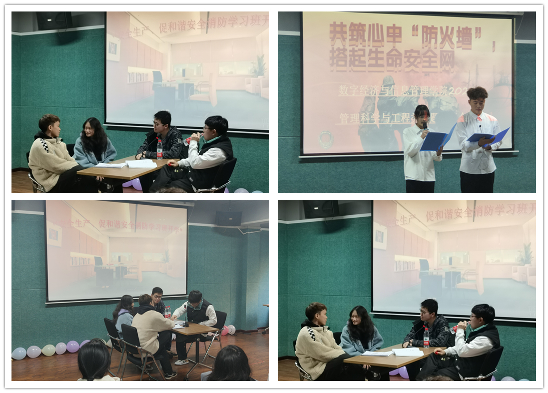 12月22日下午2点30分,由管理科学与工程类1,2班主办,管理科学与工程类1-4班参与的共筑心中“防火墙”,搭起生命安全网主题年级会在爱莲书院多功能影音室顺利举行。数字经济与信息管理学院志愿服务板块指导老师王瑞、管理科学与工程1-2班班导师王皓铎学长应邀出席活动。