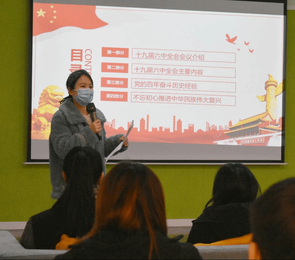 为深入学习党的十九届六中全会思想,理解全会精神,不断加强和改进新时代意识形态工作,正确培育当代大学生思想和践行社会主义核心价值观,更好建设具有强大凝聚力和引导力的社会主义意识形态,为此我院于12月22日15:00在双栀书院多功能影音室开展党的十九届六中全会精神宣讲会。此次宣讲会有幸请到数字经济与信息管理学院团总支书记马莉老师带领数信学子切实领会党的十九届六中全会精神。