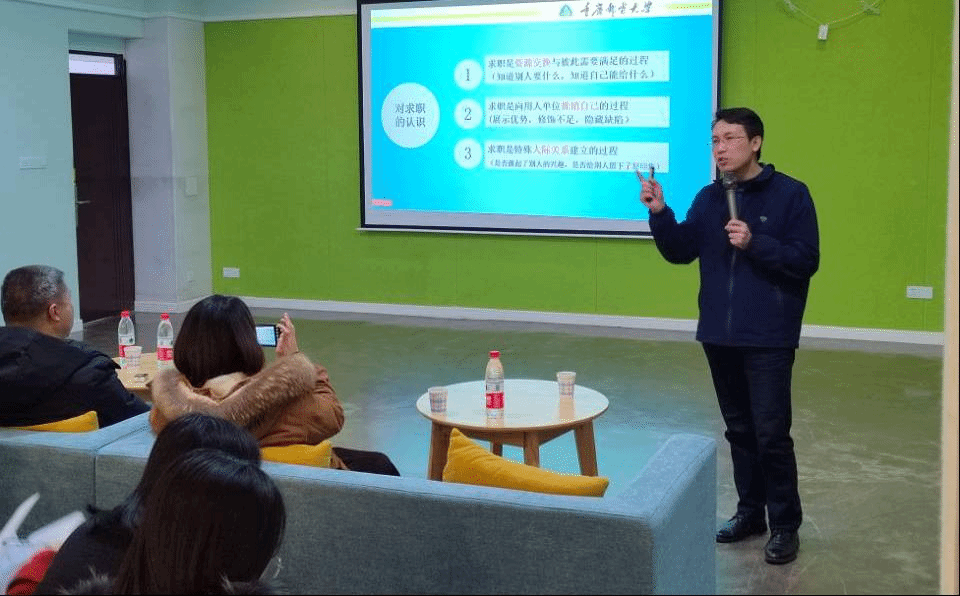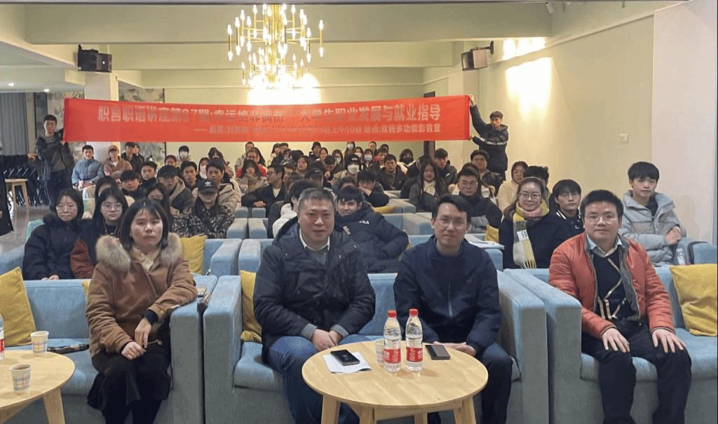 为进一步促进学生自我发展,明确学生未来职业生涯规划方向,增强自我性格认知能力,提升大学生就业创业水平,提高学生就业胜任力。我院于2021年12月23日上午10:00在双栀书院多功能影音室举办“幸运绝非偶然”第87期职言职语讲座,此次有幸邀请到重庆邮电大学团委书记,心理咨询师,KAB讲师,全球职业生涯规划师,生涯教练刘景刚老师为同学们带来大学生职业发展与就业指导。莅临本次讲座的有数字经济与信息管理学院潘显兵院长、任瑞娟副院长,学工办主任廖阳老师、团总支书记马莉以及全体辅导员老师。
