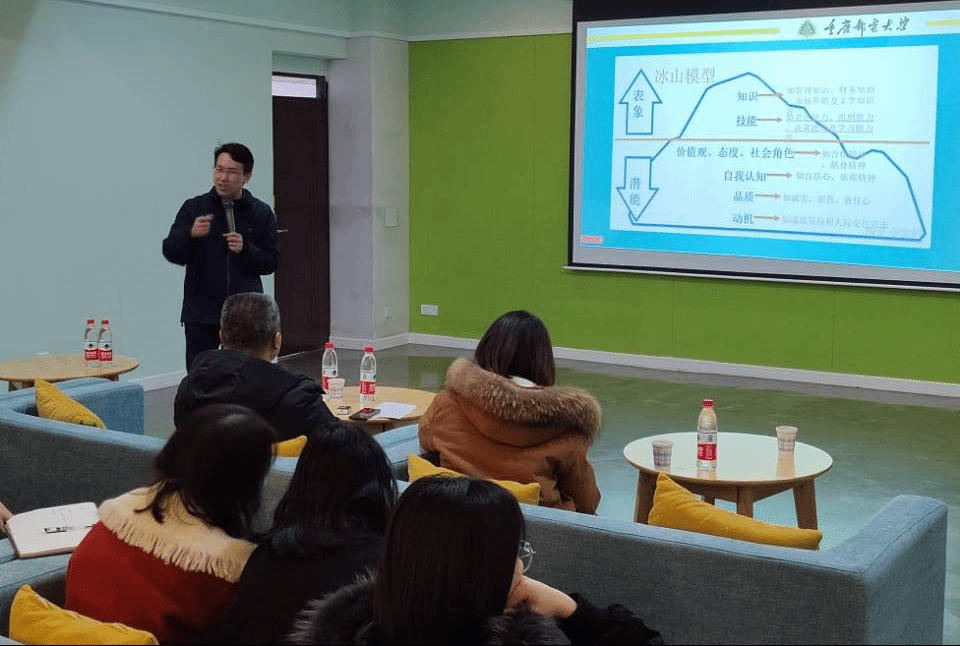 刘老师通过冰山模型向同学们讲解大学生未来就业中求职岗位所注重的细节,要求当代大学生应做到“打铁还需自身硬”,吸收知识掌握技巧,增强自身实力来增加求职成功率。在求职中价值观、态度、社会角色,自我认知,品质,动机都显得尤其重要。老师还提到在求职过程中简历制作的重要性及分享许多实用妙招,助力同学们将有更加美好的未来。