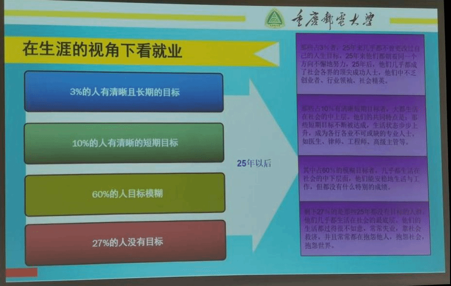 此次讲座刘景刚老师从就业的一般认识、大学生就业现状与趋势、学生求职关键点、大学生求职建议四个方面展开讲解,从学生生涯角度阐述对就业的相关认知,提出职业生涯规划是重中之重,阐释大学生职业生涯规划就是科学地分析、预测和选择、控制未来。职业规划分为内职业规划和外职业规划,是贯穿个人整个生命周期、与工作相关的经历的组合,包括客观部分(如工作职位、工作职责、工作活动以及与工作相关的决策),也包括对工作相关事件的主观知觉(如个人的态度、需要的价值观和期望等),多角度且细致入微地为同学们讲解了学生职业生涯规划中的几大阶段性战略思考。
