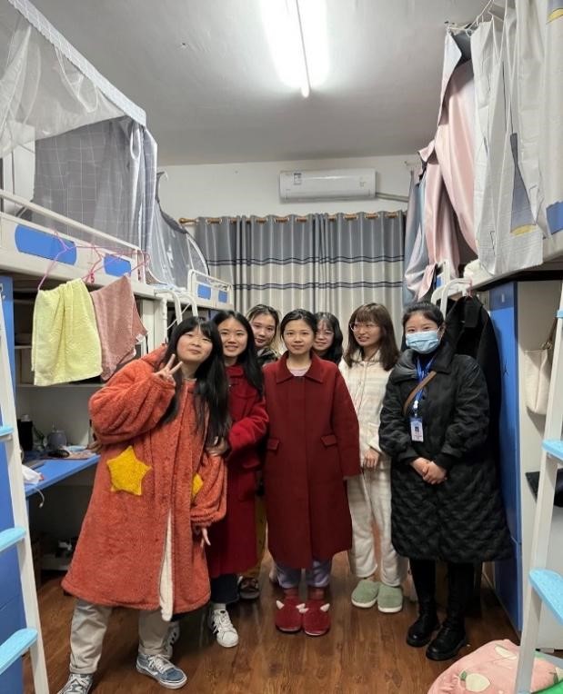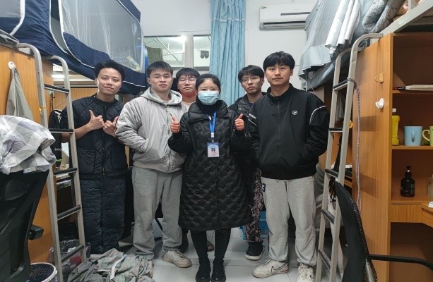 张婷老师带着对学生满满的爱意与关心来到了同学们的宿舍查寝,确保每位同学安全到校,对同学们的返校情况仔细核查,提醒同学们务必遵守宿舍管理规定、按照疫情防控相关要求执行,有任何困难及时联系沟通,良好作息、不旷课不迟到、提前做好个人规划等。