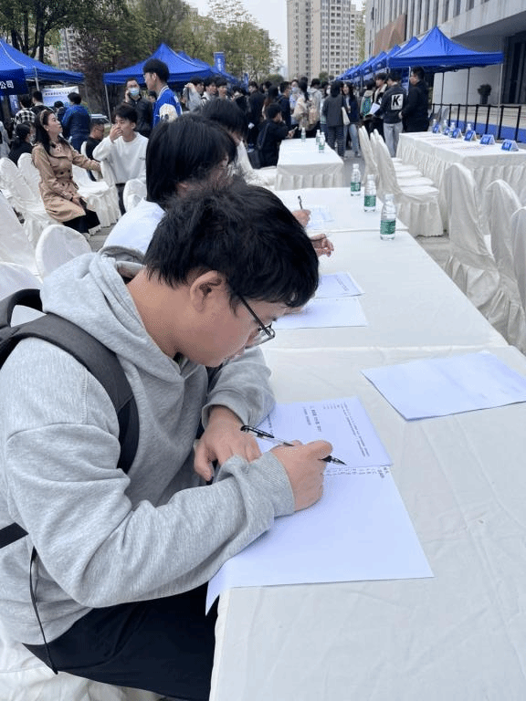 我院学生充分凸显了四位一体+双院制人才培养模式的优势,去往双选会之前,他们做好充分准备,提前携带好精心制作的简历;与用人单位沟通时,他们款款而谈,从容不迫,最终都给用人单位留下了好的第一印象。在学生积极投递简历的过程中,王焱副院长带头找到用人单位,提到我院将于4月14日召开计算机专场招聘会,希望各用人单位能到我校谈进一步的合作,为他们输送更多高质量的人才;辅导员老师们现场指导学生修改简历,指导学生面试技巧。