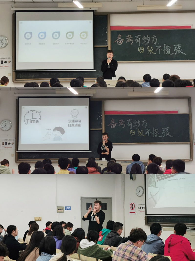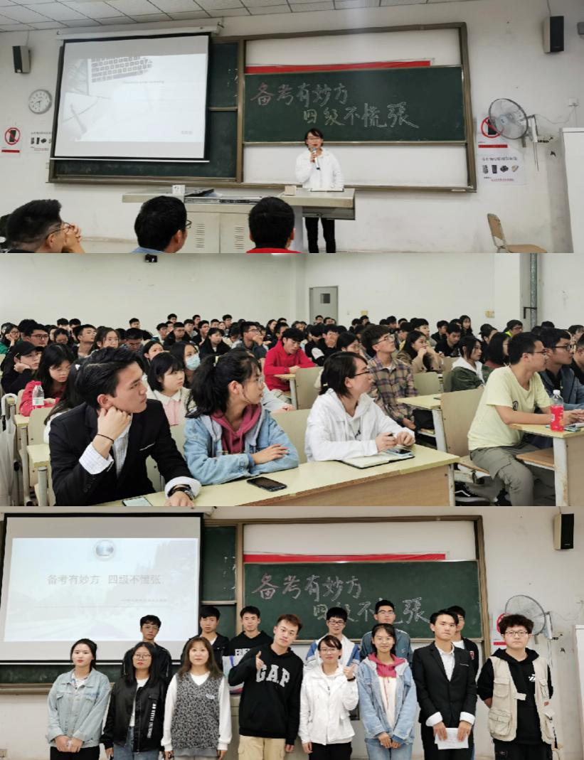 金秋的阳光温馨恬静,金秋的微风和煦轻柔,金秋的蓝天白云飘逸,金秋的田野遍地金黄。紧张的四六级英语考试刚刚结束落下帷幕,学院的同学们便纷纷投入下一轮的紧张备考中。为了更好的应对英语专业四六级考试,实现在备考中效率最大化,大数据与软件学院开展了以精准备考为主题的英语四六级备考系列活动。此次活动邀请到的主讲嘉宾为资深英语讲师肖磊老师,参加本次活动的还有大数据与软件学院学工办主任童学容老师,就业创业指导老师龚仲颖老师到场指导。