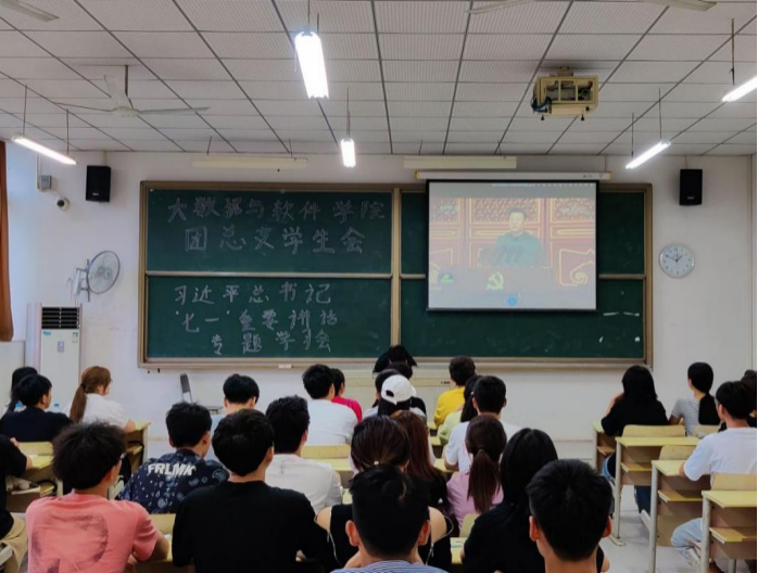 2021年7月1日,庆祝中国共产党成立100周年大会在北京天安门广场隆重举行。习近平总书记在庆祝大会上发表重要讲话,全面回顾100年来我们党团结带领中国人民开辟的伟大道路、创造的伟大事业、取得的伟大成就,深刻总结伟大建党精神,系统阐述新征程上以史为鉴、开创未来的根本要求,向全体党员发出了努力为党和人民争取更大光荣的伟大号召。同时也为了进一步深入学习习近平总书记“七一”重要讲话精神,深刻领会其中的精神实质,加强自身的思想建设,增强引导学生干部不断加深对“七一”重要讲话精神的理解和把握。更好做到感悟思想伟力,凝聚奋进力量。大数据与软件学院团总支学生会于2021年9月17日18:00在第三实验楼S3402教室开展学习习近平总书记“七一”重要讲话精神主题学习活动,参与本次学习的是团总支学生会全体学生干部。