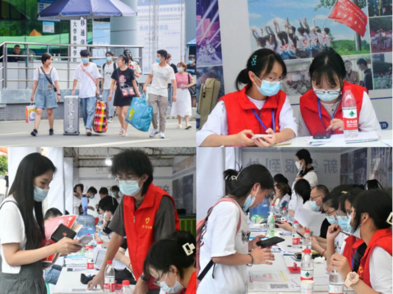 迎新工作如火如荼地进行着,到处都是忙碌的身影。从早晨8点到下午8点,在黄桷树广场上,大数据与软件学院的新生报道点总能发现一道道道靓丽的红色的身影,志愿者们轮班值守,一直坚守着岗位。高温难耐,但新同学一张张青春洋溢的笑脸让志愿者如沐春风,一双双清澈懵懂的眼眸洗涤了每个人的内心,一声声感谢拂去了志愿者心中的燥热。