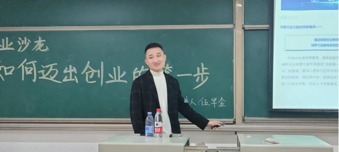 为改善我校大学生创业意识薄弱、创业难的现状,让大学生了解有关创业的重要相关知识。大数据与软件学院就业助理团有幸邀请到伍早金导师于2021年10月27日16:00在1201教室为同学们开展有关创业的分享会,学院辅导员兰宇、王琦老师参会。伍早金导师,毕业于重庆文理学院,现为学校创新创业导师库成员、双创先锋班项目导师、智能工程学院异科导师,任职期间发表青年大学生成长和发展相关论文4篇,个人获得表彰共22项,其中国家级4项,指导学生团队和学生个人获得荣誉共计49项,其中国家级11项,省市级20项。