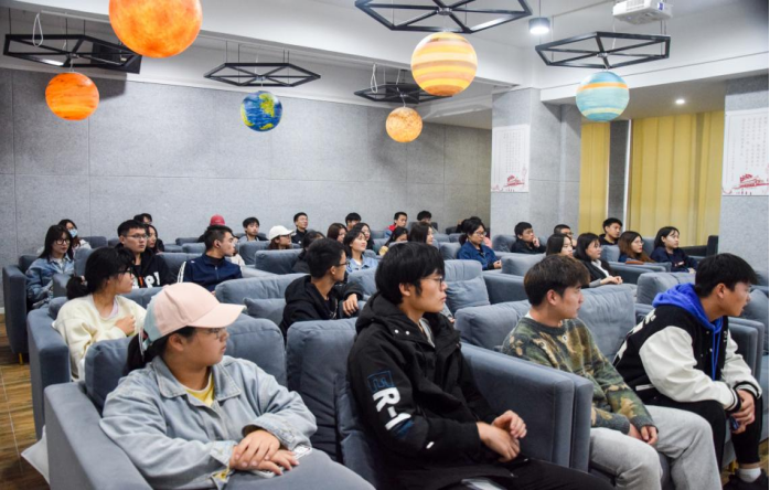 在观影室里同学们全神贯注,目不转睛。《超越》这部影片,讲述了主角青春时期巅峰高光退去后,如何面对回归平凡人生的故事。正如电影先立后破的表达方式一样,在渲染了大量“成功论”的基调和铺垫之下,在郝超越看似疯狂的振臂高呼人生非赢必输的黑白选择背后,一个猛然间的醍醐灌顶,当头棒喝迎面而来,直击心灵:这就是你追求的人生吗?与平凡的自己相遇,你会嫌弃他吗?这也让同学们感同身受,及时思考自己对梦想的追求和看法。