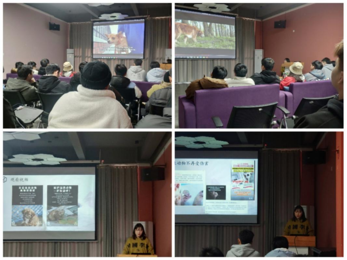 随着社会发展,越来越多人开始饲养宠物,但也有不少人因为一时兴起或者跟随潮流养起了宠物,最后又因为不想对宠物负责而抛弃了它们,这就导致了流浪动物越来越泛滥。动物与我们一样,始于生,终于死,不伤害是对生命最起码的尊重,世界上任何生物的生命都仅此一次,敬畏生命,如果有家,谁愿去流浪!任何生命都值得被温柔以待。接下来不少同学们分享了自己的看法以及宣传流浪动物志愿协会,让在座的各位同学对流浪动物有了更深的了解。