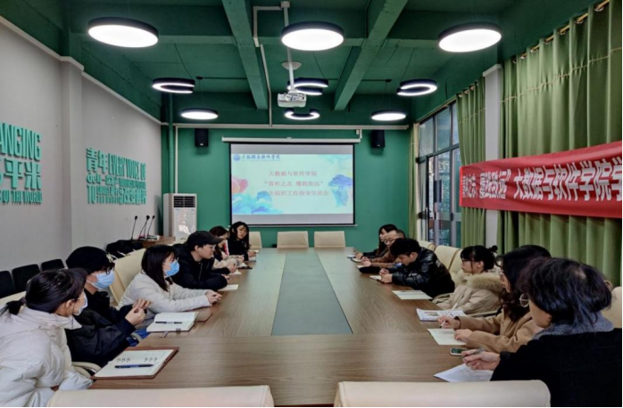 临近期末,为加强团总支各部门交流协作,交流总结学期工作经验,为未来工作答疑解惑指明方向,进一步推动大数据与软件学院团总支团学工作建设,同时引导大家树立正确的工作态度,以积极的心态参与到各项工作当中,大数据与软件学院于2021年12月2日中午12:10在花果书院201大型会议室召开了“青衿之志,履践致远”大数据与软件学院团总支工作指导交流会,出席本次会议的嘉宾有团总支书记马喆老师以及指导老师吴素虹老师。
