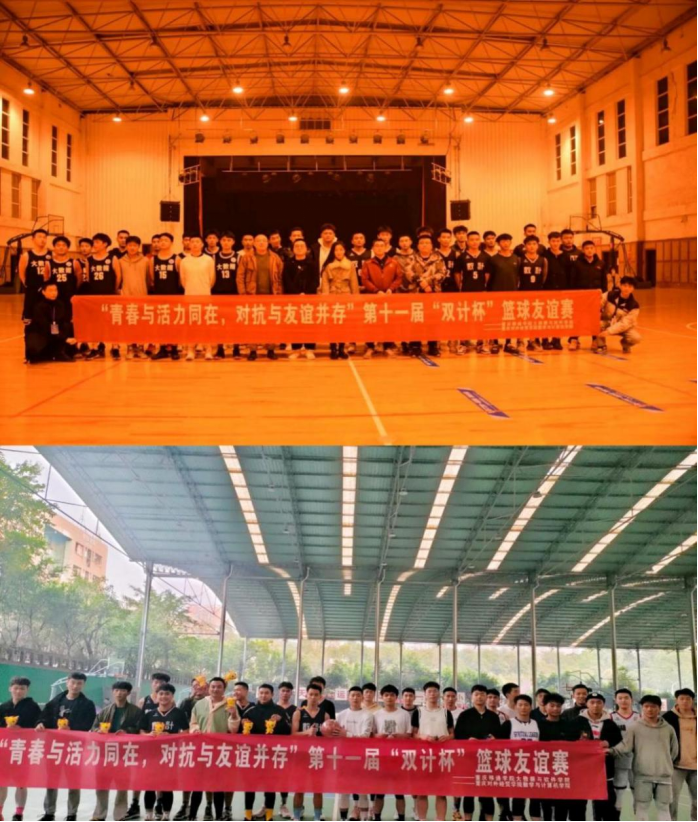 为增强重庆移通学院大数据与软学院与重庆对外经贸学院数学与计算机学院的沟通互动,促进长久融洽关系,提升两校两院系在学习和竞技体育等方面的交流,发扬团队精神,展示各自体育风采,进一步丰富校园生活,实现两校两院系共赢、共进的目标,由重庆移通学院大数据与软件学院与重庆对外经贸学院数学与计算机学院联合举办了“青春与活力同在,对抗与友谊并存”第十一届“双计杯”篮球友谊赛。此次友谊赛共两场,12月3日,于重庆对外经贸学院学生会堂进行了第一场篮球友谊赛,12月4日,于重庆移通学院风雨篮球场进行了第二场篮球友谊赛。