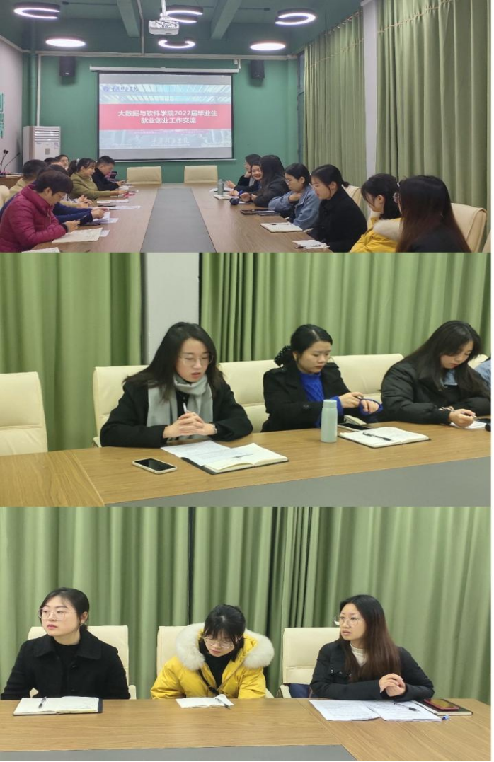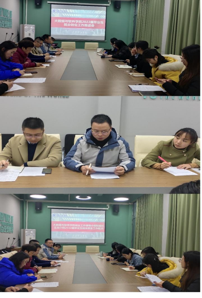 为进一步做好2022届毕业生的就业创业工作,提高毕业生就业能力与实现毕业生更高质量就业的工作目标。大数据与软件学院于2021年12月7日下午2:00在花果书院二楼会议室召开2022届毕业生就业创业工作推进会。莅临本次会议的嘉宾为:重庆移通学院就业创业指导与服务中心副主任佘桂隆老师、大数据与软件学院副院长闫会峰老师、学工办主任童学容老师、教研室主任邓秋菊老师以及2021届、2022届全体辅导员参加此次会议,本次会议由大数据与软件学院副院长王焱老师主持。