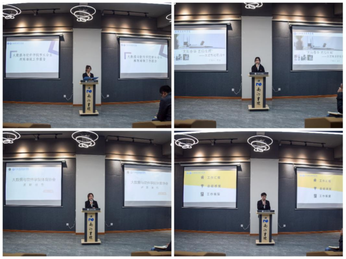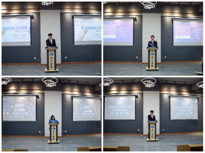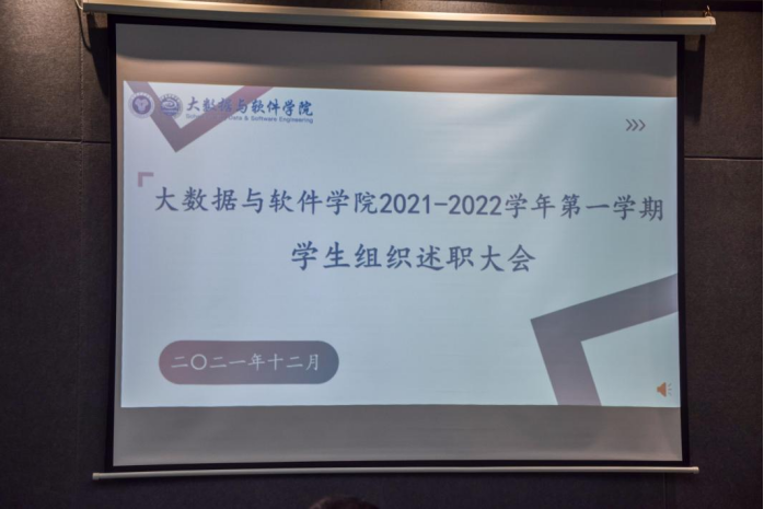 转眼间,大数据与软件学院的师生已经走过了2021-2022学年的一半路程,为更好地向全院师生展示本学期的工作情况,对本学期学生组织的各项工作进行总结和反思,并做好下期工作谋划。2021年12月17日下午15:00,大数据与软件学院于南湖书院声影活动室举行了2021—2022学年第一学期学生组织述职大会。本次大会特别邀请了大数据与软件学院副院长王焱老师、大数据与软件学院团总支书记马喆老师、大数据与软件学院学工办主任童学容老师以及大数据与软件学院学生办公室各位老师。