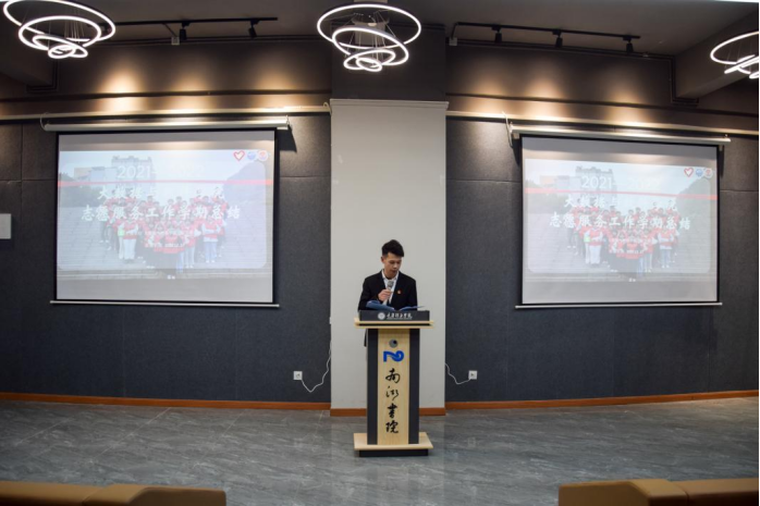 青年志愿者协会主席刘演军,青年志愿者协会综合行政部副部长陈艳、志愿服务分队副队长傅启行、大数据服务中心副主任雷锐、宣传推广部部长任宇俊上台分别述职中总结了本学期所获得的成就:本学年7月大数据与软件学院“三江红丝带·防艾天使计划”防艾宣教项目入选2021年中国性病艾滋病防治协会高校防艾基金项目、8月入围重庆市“青年爱不艾”高校社团参与艾滋病防治项目、8月大数据与软件学院院青年志愿者协会入围2021年团中央“七彩四点半”志愿服务项目示范团队等荣誉。青协将继续围绕“焕新·提质”年度关键词,认真践行1246+志愿服务2.0体系,拓展志愿服务新领域,继续深化与社会公益服务的融合,加强与各高校的交流合作,加强与专业知识的结合,打造特色化、专业化的志愿服务体系。
