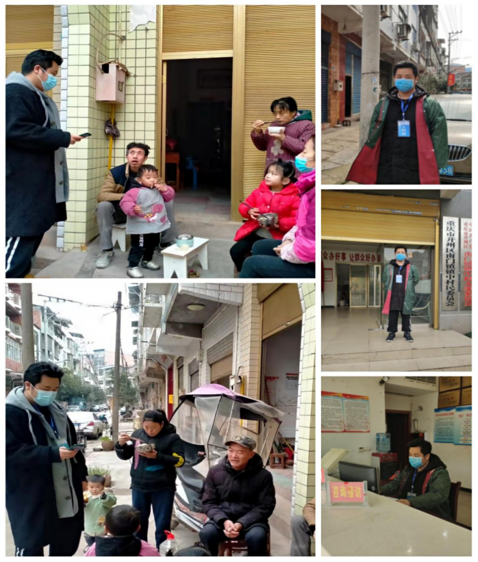 大数据与软件学院大三学生甘宗玉,也是一名共产党员同志,她寒假回到重庆市城口县厚坪乡庙坪村后,响应村委会的号召,主动投身于抗击疫情工作中,奉献自己的力量。她积极向庙坪村村委会报名,与村里的党员先锋同志一起成为了防疫志愿者,参与到了基层防疫工作中去。甘宗玉的主要工作分为三部分,第一部分是通过开展卫生防疫宣传工作,进一步提高群众的卫生防疫意识。第二部分是重点排查重庆市外返乡人员,帮助返乡人员测量体温,检查返乡人员的健康码、行程码,对进出人员进行登记等。第三部分是对从中高风险地区回来的村民进行摸底和排查,要求出示48小 时内核酸检测证明。作为志愿工作者,所有项目都要一一核实,认真登记,无问题者,才能给予通行。