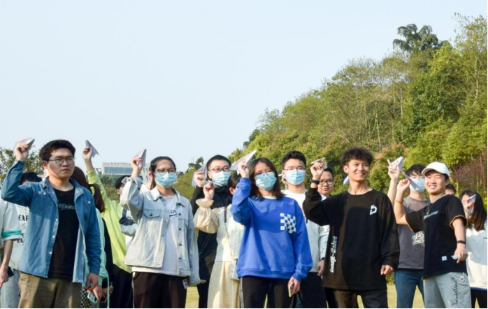 在学长学姐们的祝福下,同学们在手上的纸飞机上写满了他们的期望和梦想,希望能通过手中的飞机把那梦想与期盼带往远方,在理想的蓝天上,随风飞翔,永不坠落,他们所追求的是梦想也是青春。