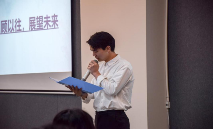 三届三任主席团作为三届三任团总支学生会的领头羊,为了各部门能更加高效的完成工作,鼓舞大家新学期的士气。团总支学生副书记罗泽勇上台代表主席团表达了新学期对干部们的新期望,他讲述了他从大一作为干事一路走来到现在成为学生主席,对他来说,他收获了许许多多,团总支学生会也改变了他许许多多。这是个潜移默化的过程希望同学们能沉住气,一起等待有厚积薄发的一天,接下来的半年是他在团总支学生会的最后的半年,他希望能和大家一起携手并进,站好最后一班岗。大家充满信心和力量的回复了他:“可以”!