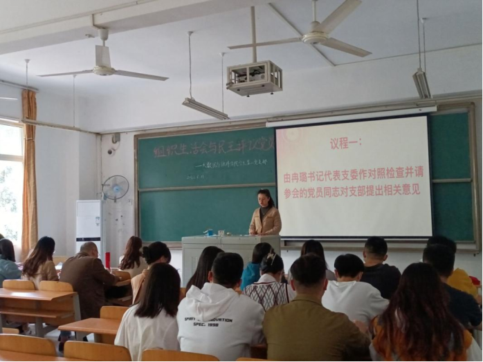 根据党章和党内有关规定以及《中共重庆移通学院委员会关于召开2021年度基层党支部组织生活会和开展民主评议党员的通知》要求,2022年3月11日星期五下午,大数据与软件学院学生第四党支部在第四教学楼4101召开了大数据与软件学院学生第四党支部2021年度组织生活会。会议列席者包括大数据与软件学院党总支副书记王焱同志、学生第四党支部书记贾镔同志以及其他正式党员28人,预备党员16人。会议由陈坛娟同志主持。