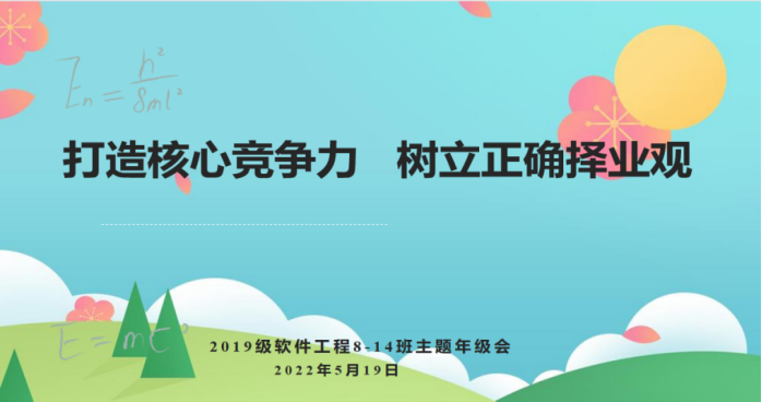匆匆又夏天,再临毕业季。大三的同学也将奏起大学时代的尾音,就业形势逐渐紧迫。为了营造就业的紧迫感,促进同学们的就业择业意识,切身体验自主择业的感受,锻炼学生的就业软实力能力。大数据与计算机科学学院2019级软件工程8-14班于2022年5月19日下午15:00在花果书院举办了以“打造核心竞争力,树立正确择业观”为主题的年级会。本次年级会采用线下+线上腾讯会议的方式,既减少疫情期间人员聚集又可以达到全覆盖,双体软件精英产业学院职场王欣老师、2019级辅导员童学容老师及2019级软件工程8-14班全体同学参与了本次年级会。
