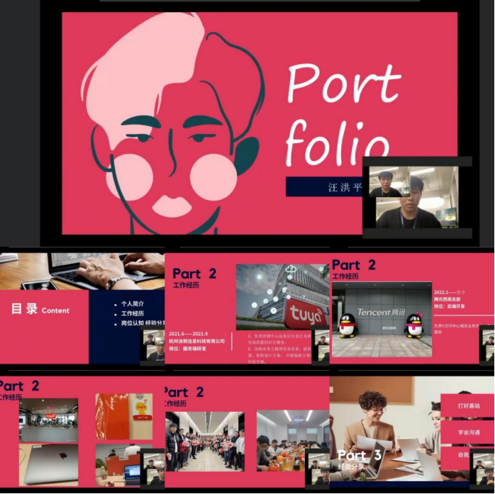 接下来是汪洪平同学为大家带来大学生求职的经验分享。汪洪平同学现就职于腾讯西南总部,从事后端开发工作。汪洪平同学跟大家分享了很多自身的工作经历,特别提到希望学弟学妹们不要仅仅只是学习技术,还要多看一些课外书籍,丰富自身知识储备,并从自身经历出发鼓励同学们现阶段要打好基础、学会沟通、自我革命。
