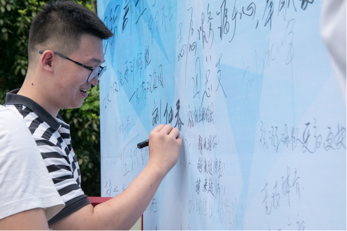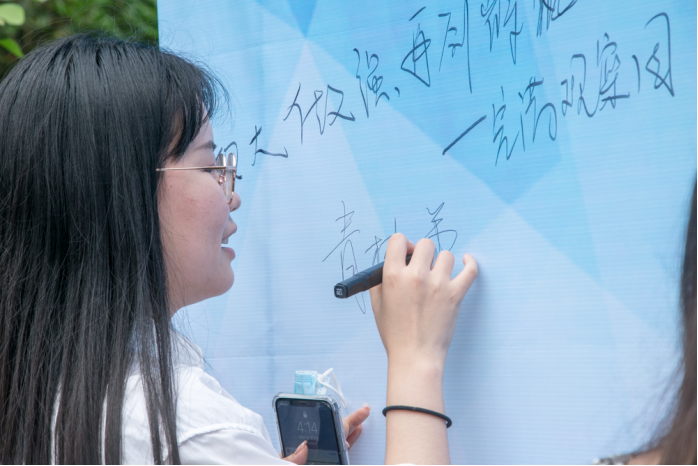 回首过去,我们思绪纷飞,感慨万千;立足今日,我们胸有成竹,信心百倍;展望未来,我们引吭高歌,一路欢笑。感谢全院师生在这一学年的辛勤付出,希望各位在今后的工作中不忘初心,为我院全体学生创造一个发现自我、展现自我、实现自我的完满教育平台。最后大家一同移步图书馆合影留念并在寄语墙上签名。励志前行话完满,匠心筑梦大数据,未来可期,让我们一起努力,再创佳绩!