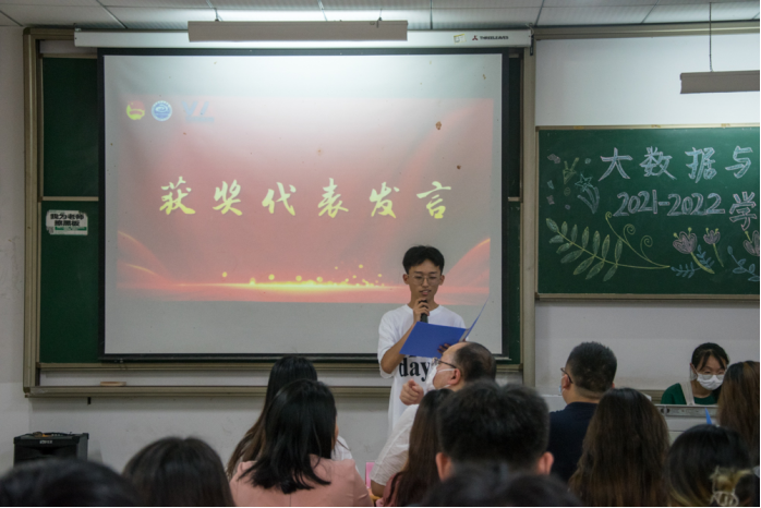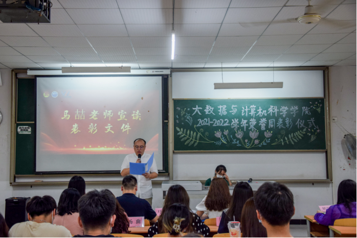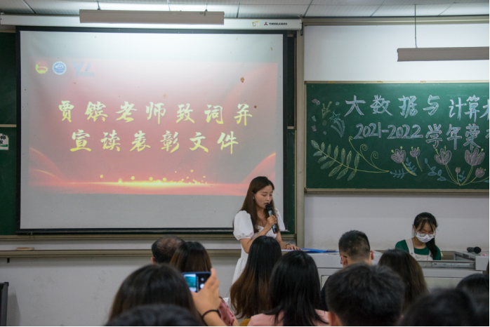 十年完满,路程漫漫,大家都收获了无数的成果与感动,前行的路上,依旧不停地涌现着一批批的开拓者,他们以身为灯,照亮众人。由大数据与计算机科学学院团总支书记马喆老师宣读表彰文件,对这一学年里为学院的发展做出突出贡献的学生们表示高度的肯定与慰问。