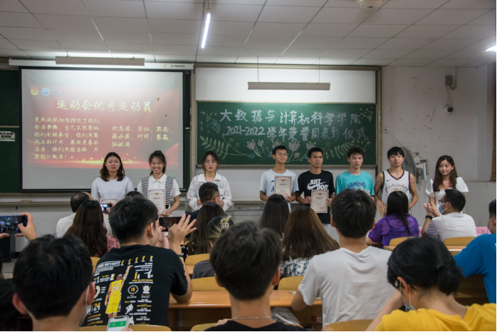 六月骄阳似火,激情燃烧岁月。2021-2022学年大数据与计算机科学学院在全体师生的共同努力下,学生工作取得了不俗成绩。回首过去如火如荼的工作历程,大家上下一心,努力拼搏,共同创造了辉煌的业绩。今天,大家隆重集会举行荣誉周表彰仪式,对过去一年的工作进行成果验收,全面总结,为本学年的工作画上一个圆满的句号!首先,大家共同观看大数据与计算机科学学院学年回顾视频,一起领略、回顾各位伙伴在一起奋斗的一年。熟悉的画面是大家难忘的回忆,一年的酸甜苦辣仿佛重现在眼前,欢笑和汗水,是大家一路蜕变的痕迹。有过泪水,有过笑容,有过坚持,但从未有过放弃。
