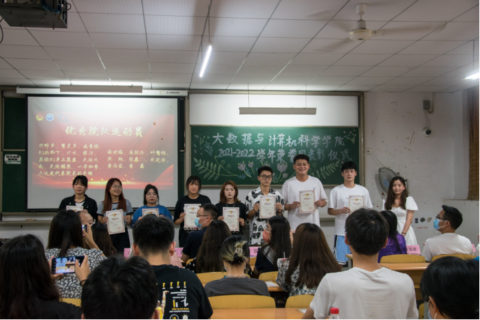 本学年,在竞技体育的各大赛场上,涌现了一批展现我院学子竞技体育精神的运动员们,他们在田径场上,全力冲刺,搏击锋芒,为学院争光添彩;在排练厅里,挥动双手,变换脚步,以特有的活力与魅力展示大数据的蓬勃朝气;游泳池中,一呼一吸,与水共舞,他们的目标不止于陆地;在球场上,变换动作,奋力前行,坚持是他们的个性,汗水早已成为习惯。他们,是的百折不挠的战士,是大数据与计算机科学学院的荣光。运动员的背后,是工作人员们的默默付出,你们是最坚实可靠的臂膀,给予前方战士最及时的援助!是他们的努力,让学院竞技体育不断获得佳绩。最后由贾镔老师致词并颁发获奖证书,对这学年取得佳绩的运动健儿们表示祝贺。