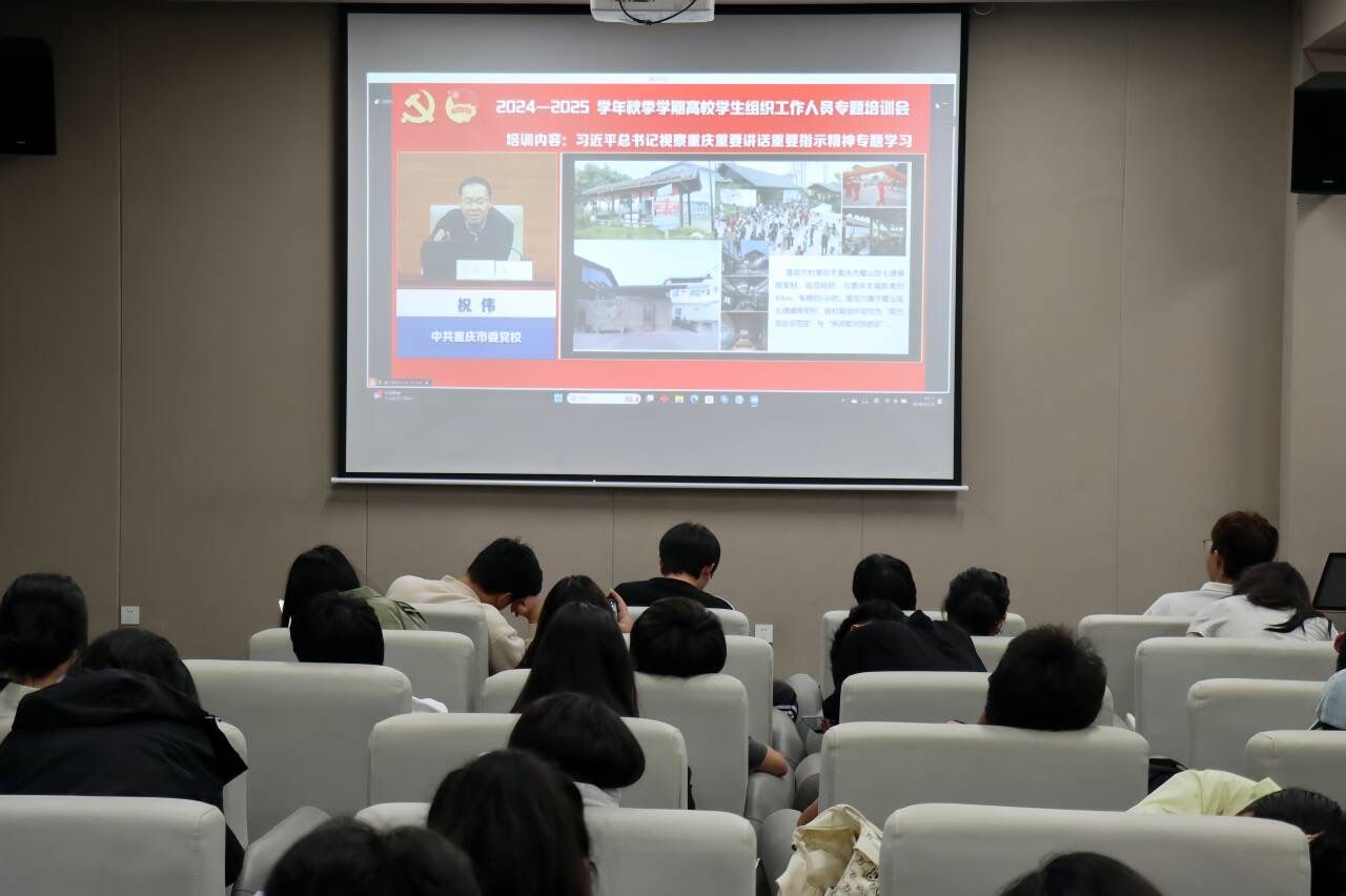 2024-2025学年秋季学期高校学生组织工作人员专题培训开班仪式正式开始,双校区学生组织工作人员与学生社管管理中心学生代表在别都书院四维空间、瀛溪书院潜台词影音室、南湖声影活动室参与此次培训。会议主要传达了党的而二十届三中全会精神并围绕此精神开展专题培训,着重强调培养组织内重点人才;强调进一步全面深化改革学生组织工作的指导思想;强调学生组织工作人员的组织、作风和纪律,积极的向党组织精神靠拢。随后开展了对于“习近平总书记视察重庆重要讲话重要指示”、“防范化解团学舆情风险”的专题学习,加强了对学生干部的自身要求,严于律己;强化了学生干部的群众意识、责任意识、奉献意识;强调了思想理论学习,不断加强和改进新时代下的我校学生会工作。