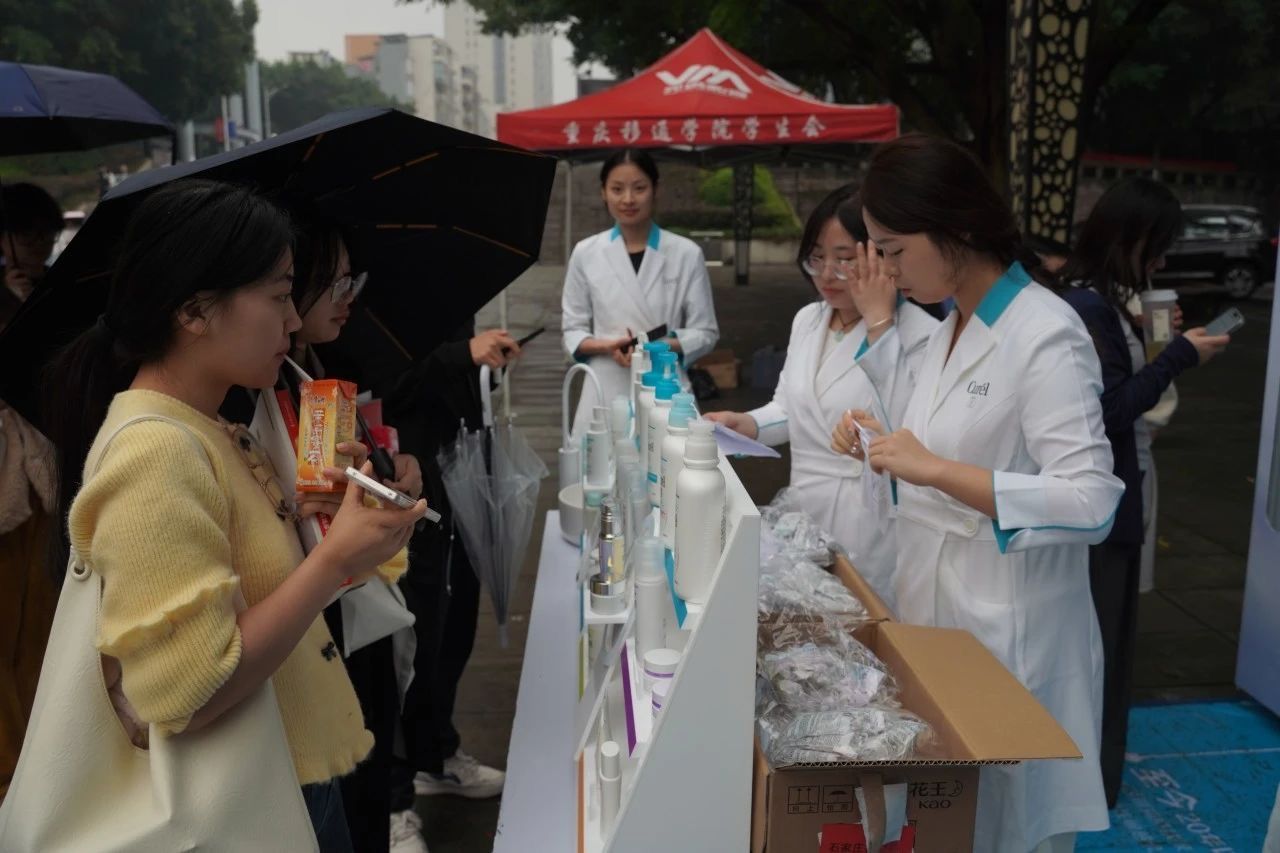 校学生会外联部,承担着对外交流、引进赞助等重要工作,是对外交流和对内互联的纽带。他们秉承着“外引内联,内引外联”的口号,此次11月为了提升同学们对皮肤健康的重视,并传授正确的护肤知识与技巧,校学生会外联举办了“珂润校园行”活动。在活动现场,他们邀请专业人士为学生们提供了免费的皮肤检测服务,并依据每个人的肤质,给出了定制化的护肤建议。他们还分享了挑选合适护肤产品和掌握正确护肤技巧的知识,鼓励学生们亲自体验这些产品。本次“珂润校园行”活动成功吸引了众多学生的关注,活动现场参与人数超2000人,师生满意率达99%,用实际行动做好“全心服务 在你身边”。